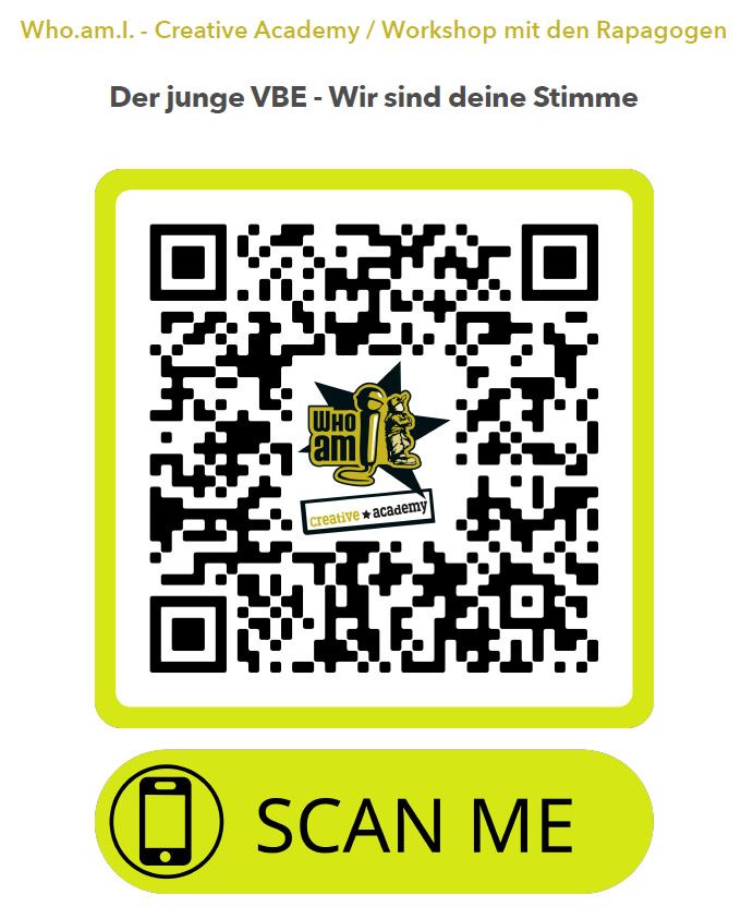 Die in Gruppenarbeit erarbeiteten Verse orientierten sich an vier Themen: Erstens einer Hommage an den Beruf der Lehrkraft, zweitens den Baustellen der schulbezogenen Strukturen und Aufgabenbereiche, drittens der Art und Weise, wie der VBE diese Belange adressiert und viertens den Visionen von besserer Bildung. Die Teilnehmenden waren besonders überrascht, wie sich eigene Hemmungen abgebaut hatten, am Projekt selbst auch rappend teilzunehmen und sehen Rap nun vielmehr als Tool, die Klassengemeinschaft zu stärken. Dies wurde sicher durch die äußerst authentische und wertschätzende Art der beiden Referenten begünstigt. Wir bedanken uns für die inspirierenden Eindrücke und die zielorientierte Zeitgestaltung. Über den QR-Code kommst du zu unserem Ergebnis. Viel Spaß beim Reinhören!
