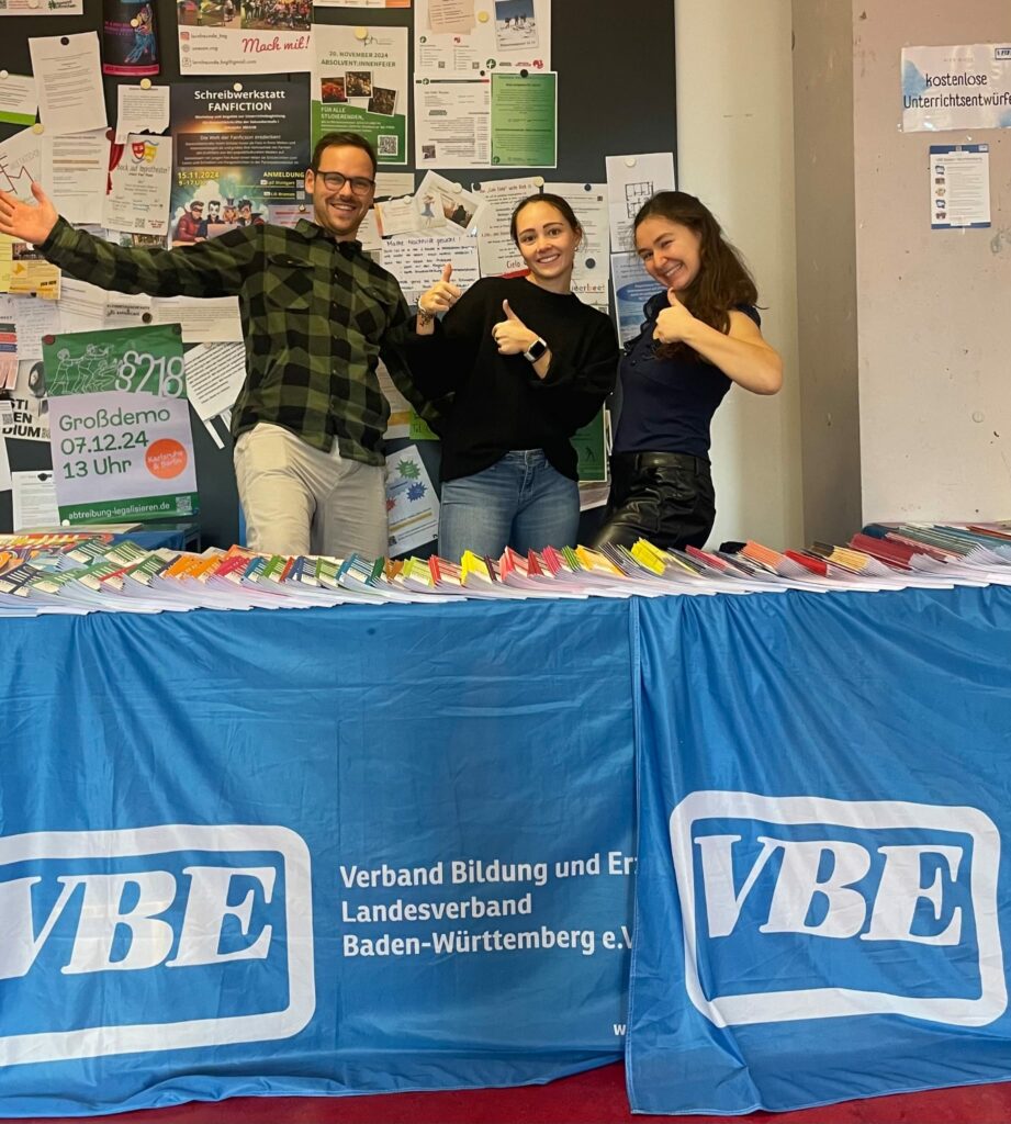 Wenn ihr Interesse habt, den Jungen VBE aktiv zu unterstützen und dabei sogar noch Sozialpunkte sammeln wollt, meldet euch gerne bei: annika.jung@vbe-bw.de. Falls ihr unsere Arbeit an einem der vielen Infostände an eurer Pädagogischen Hochschule unterstützen möchtet, schreibt: magdalena.hohn@vbe-bw.de