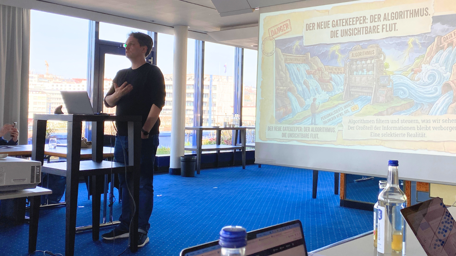 - Florian Nuxoll mit seinem Keynote-Vortrag zur Gefährlichkeit von Algorithmen und Social Media.