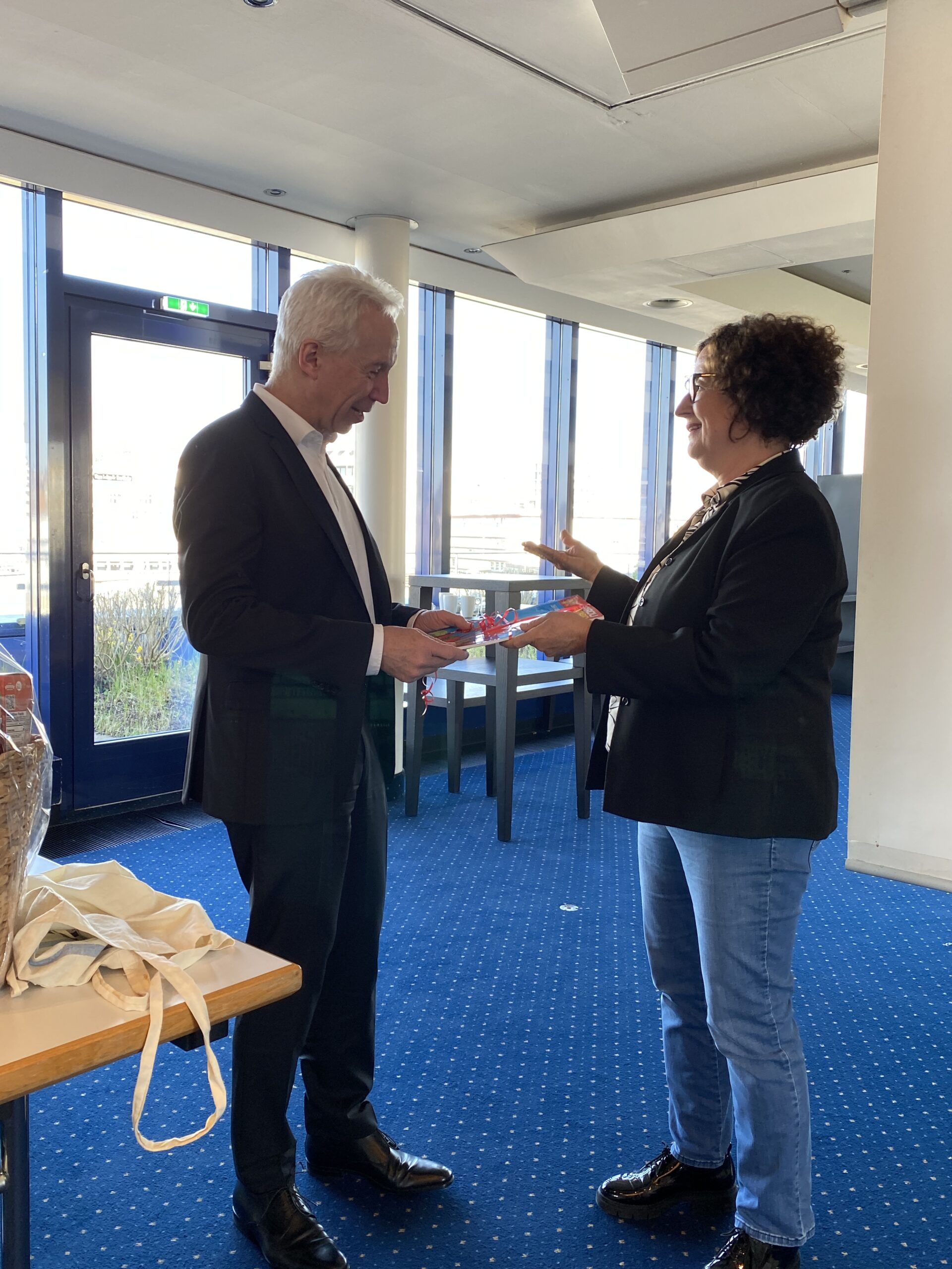 Andrea Friedrich, die langjährige Vorsitzende des Landesbezirk Nordbaden, wurde durch den Landesvorsitzenden Brand verabschiedet. Friedrich war bei der letzten Wahl des Landesbezirks Nordbaden nicht erneut angetreten; an ihre Stelle rückt Michael Mercatoris.