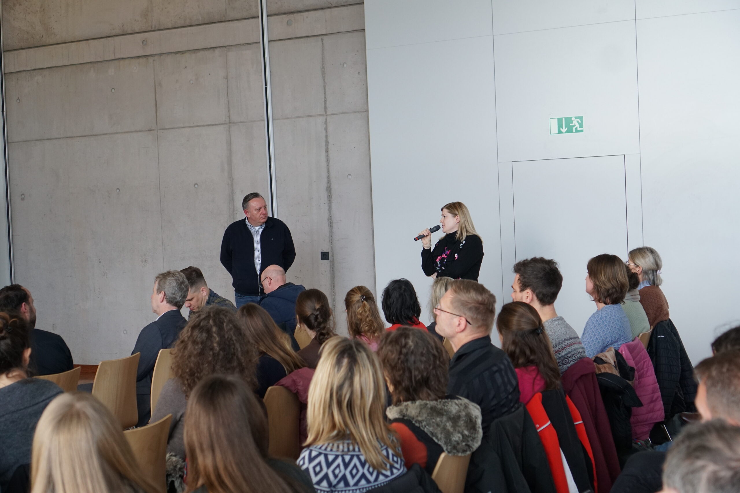 Im Anschluss präsentierte Abteilungsleiterin Eva ter Veen, unterstützt von Lehrerin Annika Bühner und Schülern der Schule, das durch das BORIS-Siegel der IHK ausgezeichnete Konzept zur Berufsorientierung der Johanniterschule. Dieses zielt darauf ab, die Schülerinnen und Schüler zusammen mit zahlreichen außerschulischen Partnern aus Industrie und Gewerbe systematisch und praxisnah auf ihre berufliche Zukunft oder weitere Schullaufbahn vorzubereiten.