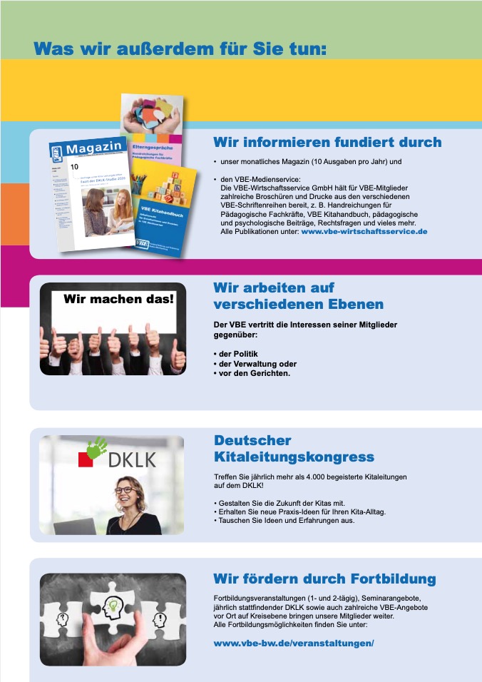 Werden Sie Mitglied im Verband Bildung und Erziehung (VBE) Baden-Württemberg. Wir sind die mitgliederstarke, bundesweite Organisation für Lehrkräfte und Pädagogische Fachkräfte zur Mitgestaltung der Schul- und Kitapolitik.
